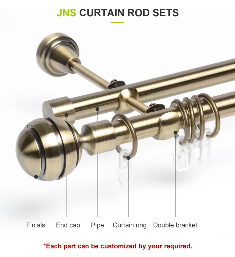 Ebay Hot sale curtain accessories rods curtain finials with iron tube adjustable curtain rod sets