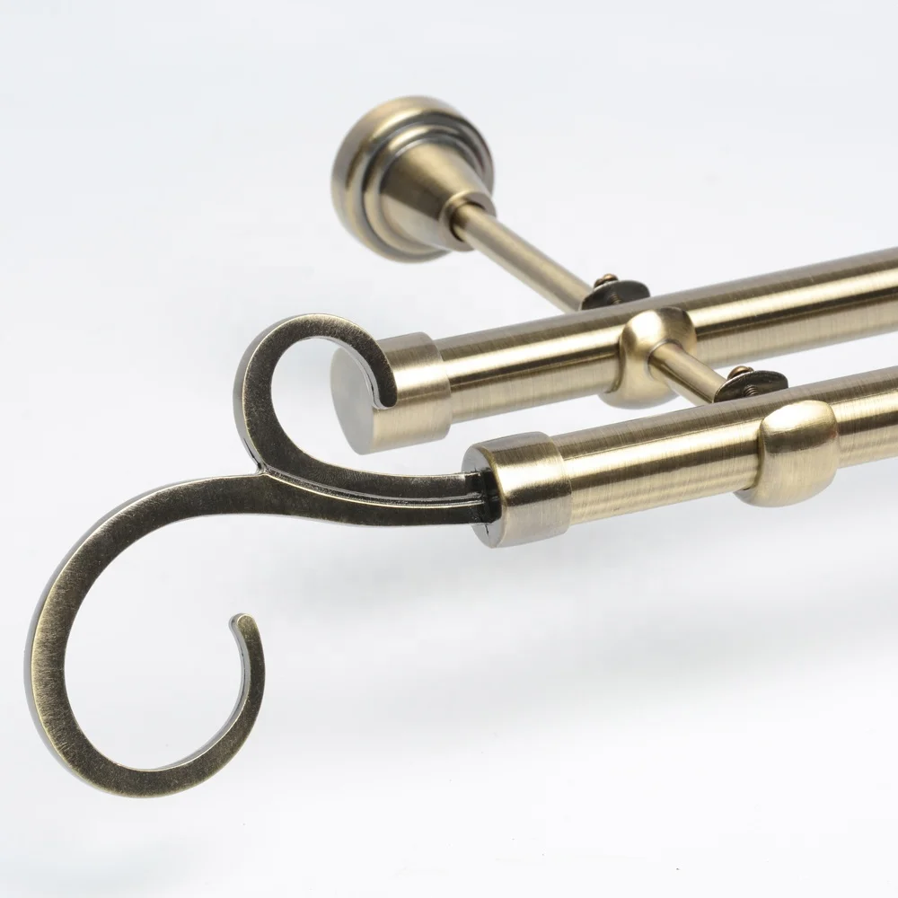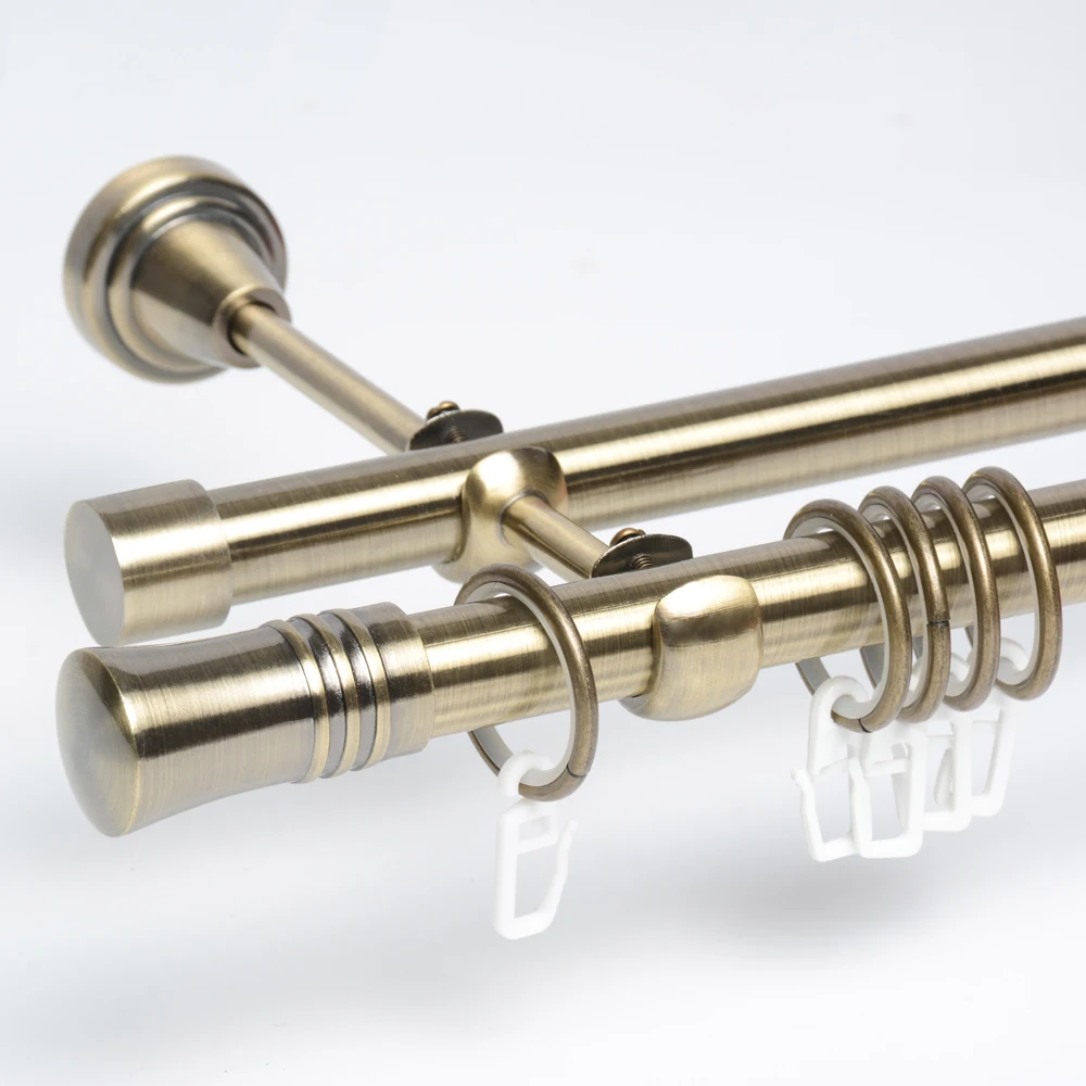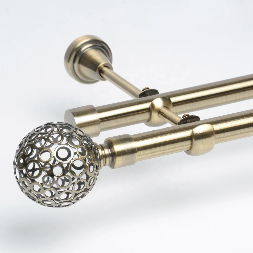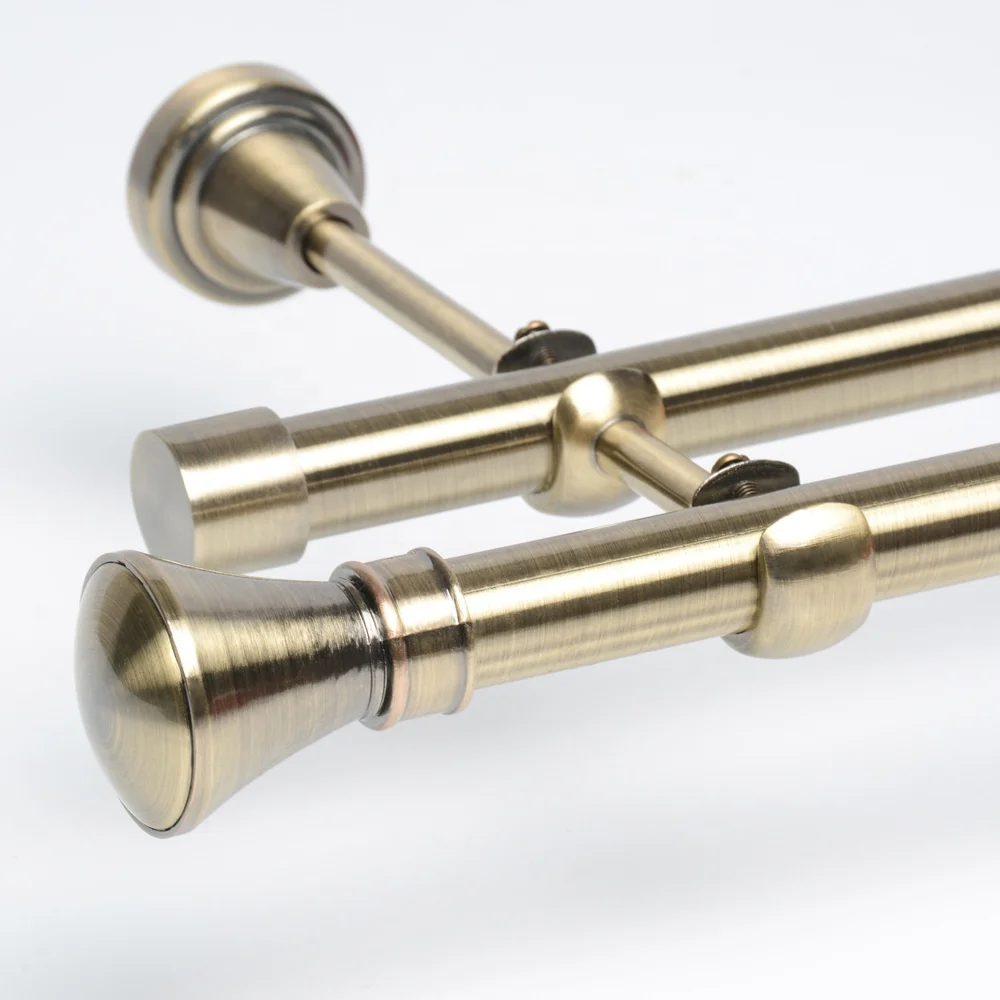 Stardeco Adjustable Double Curtain Rods Sets Aluminum Finials Metal Accessories