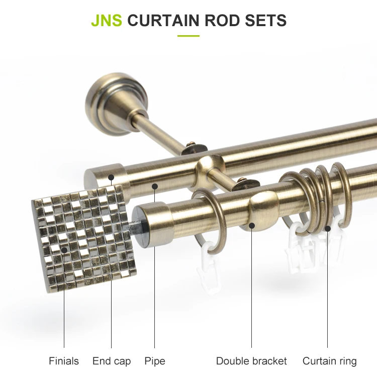 | Sets | Finials*2pcs, Pipes*1pcs, Brackets*2pcs, Rings*10pcs/m, Hook*10pcs/m | |